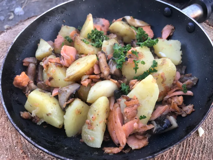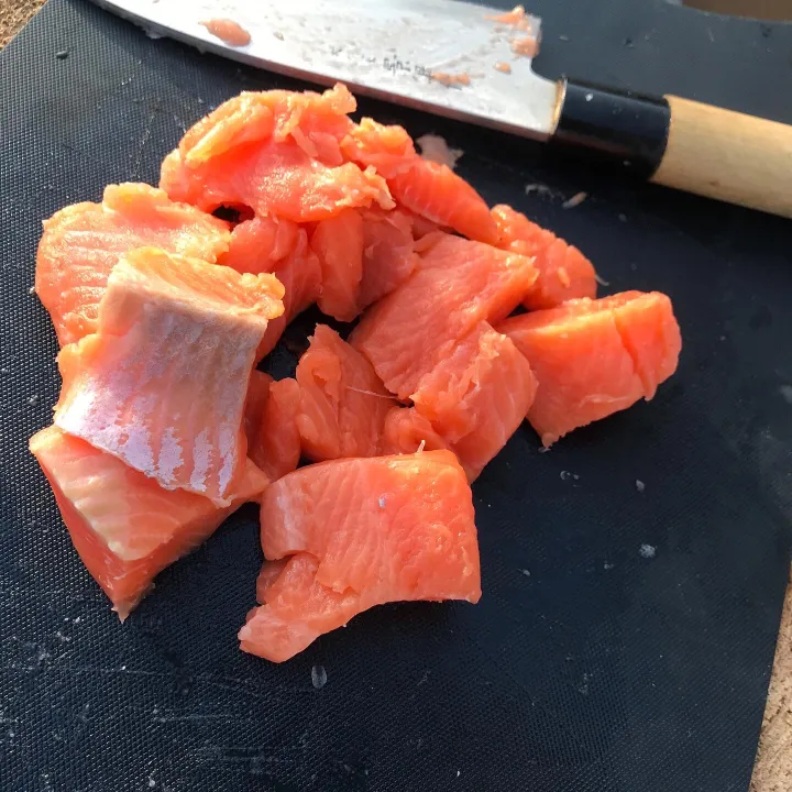 サーモンの水分が飛んでしまうほど、カリカリになってしまいましたがなんとか完成!