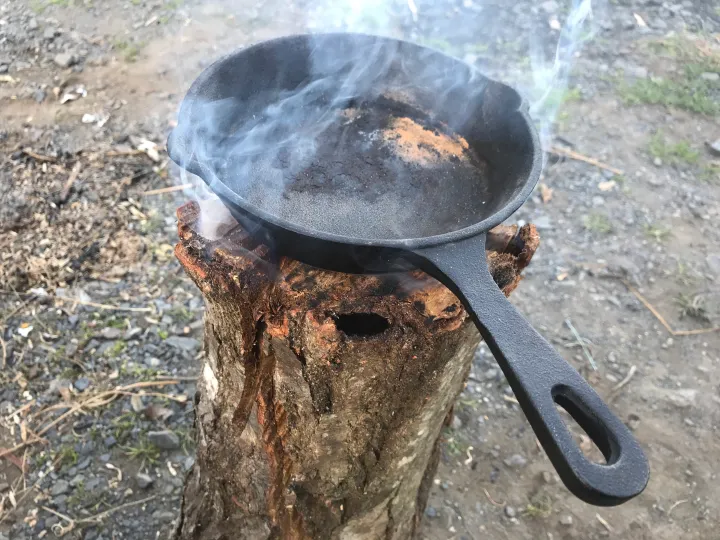 ゆっくりと燃焼していると煙が多めに出ることもありますが、手をスウェーデントーチに近付けると暖かさを感じ取れるようになりますよ。火力が出てきたら、調理器具を置きましょう。
